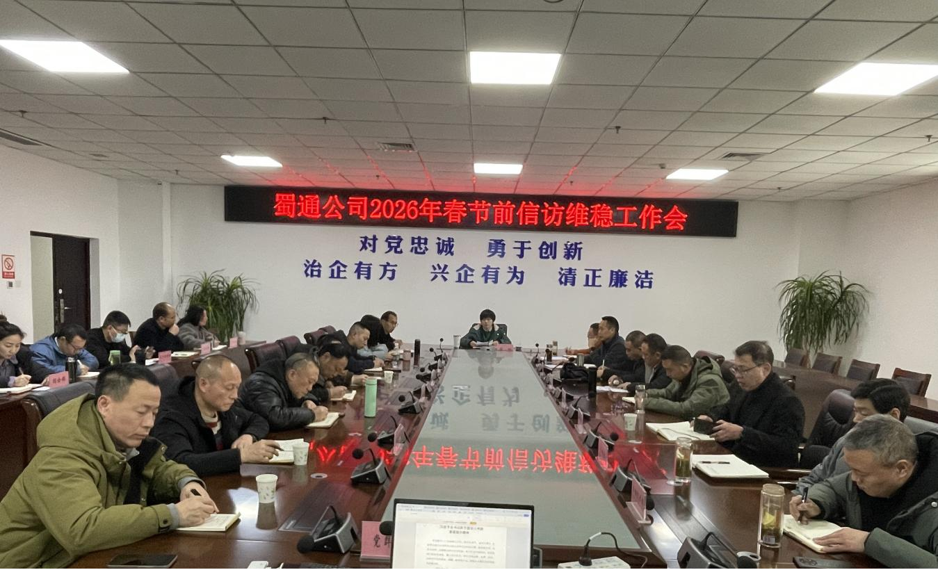 為切實(shí)做好2026年春節(jié)期間的信訪穩(wěn)定、安全生產(chǎn)與優(yōu)質(zhì)服務(wù)工作,營(yíng)造和諧、有序、平安的節(jié)日出行環(huán)境,2月6日,蜀通公司組織召開春節(jié)前信訪維穩(wěn)工作會(huì)。公司黨總支書記、董事長(zhǎng)唐娜主持會(huì)議,領(lǐng)導(dǎo)班子成員、各部門負(fù)責(zé)人及各單位黨支部書記和責(zé)任人參加。