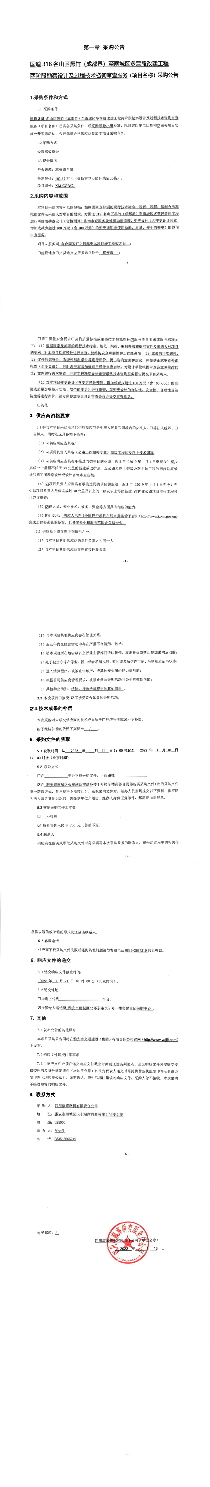四川康藏路橋有限責(zé)任公司國道318名山區(qū)黑竹(成都界)至雨城區(qū)多營段改建工程兩階段勘察設(shè)計及過程技術(shù)咨詢審查服務(wù)采購公告