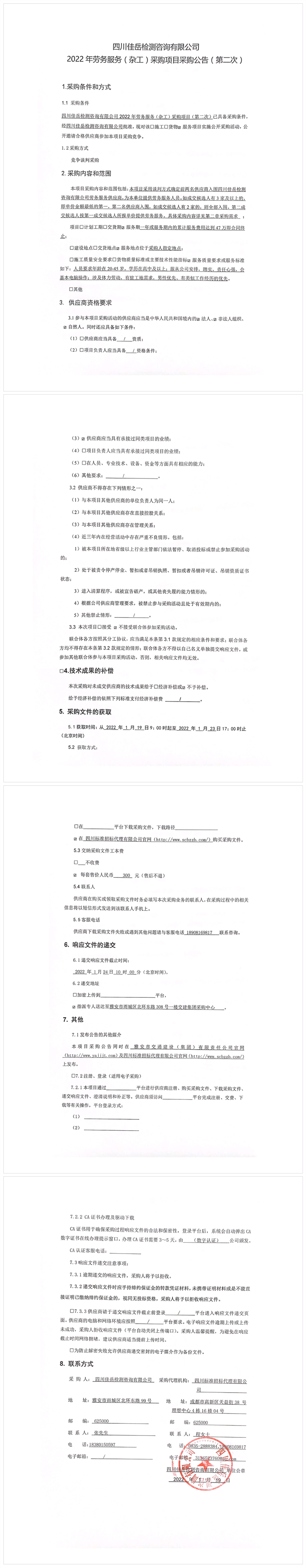四川佳岳檢測(cè)咨詢有限公司2022年勞務(wù)服務(wù)(雜工)采購(gòu)項(xiàng)目采購(gòu)公告(第二次)