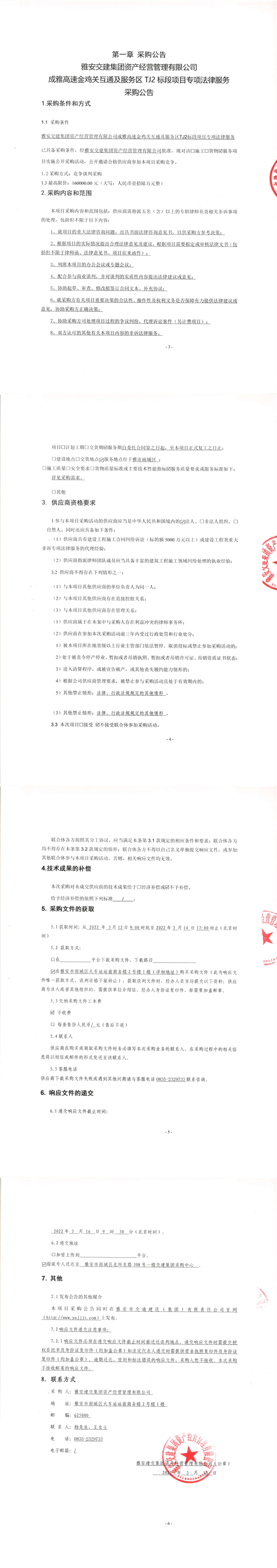 雅安交建集團資產(chǎn)經(jīng)營管理有限公司成雅高速金雞關(guān)互通及服務(wù)區(qū)TJ2標段項目專項法律服務(wù)采購公告