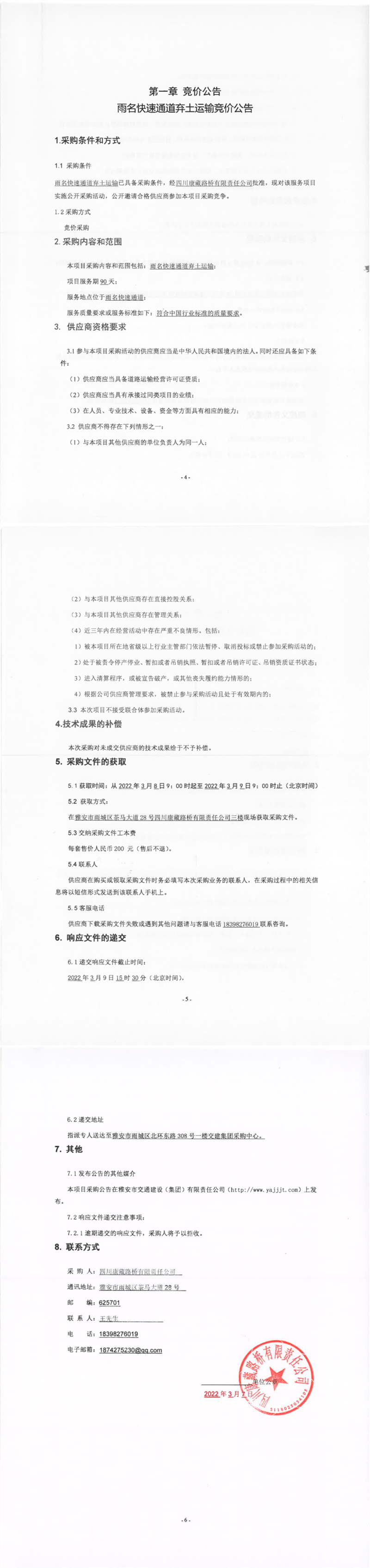 四川康藏路橋有限責(zé)任公司雨名快速通道棄土運(yùn)輸競(jìng)價(jià)公告