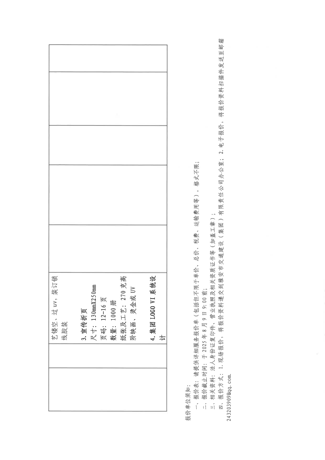 關(guān)于采購集團品牌形象宣傳服務(wù)單位的詢價函